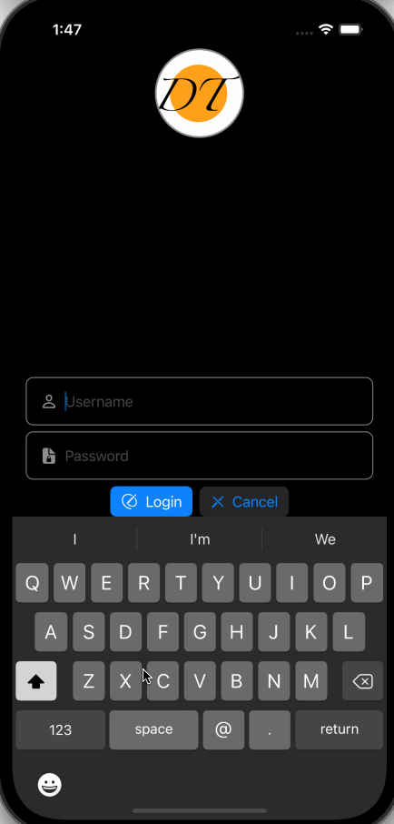 For this example, we will push our username, password fields down so when TextField is focused, the keyboard can push TextFields up so they can stay visible.